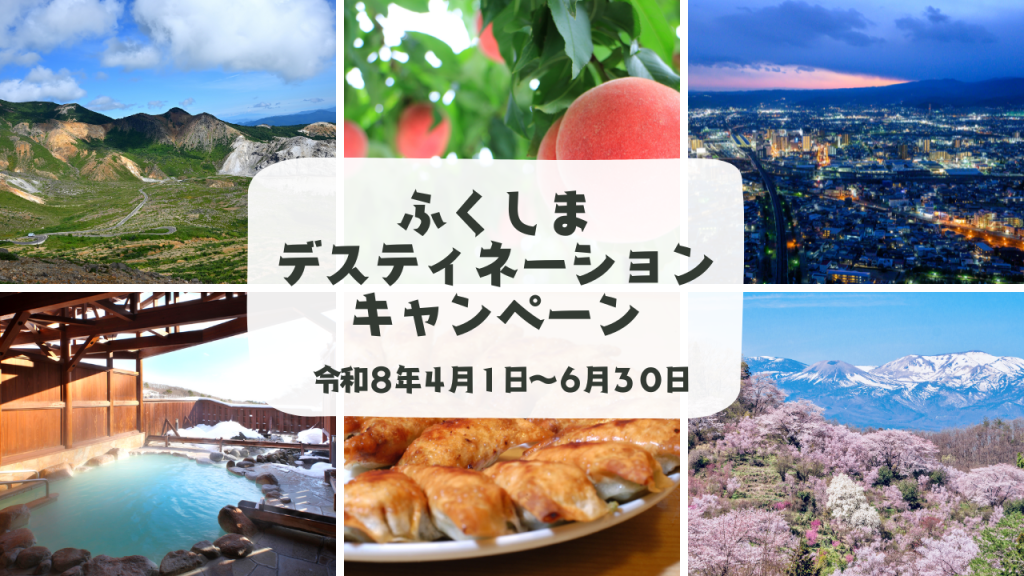 令和8年4月1日から6月30日の3ヵ月間、県内全域でJRグループ6社と県や市町村、地元の観光事業者などが一体となって地域の新たな魅力を発信し、観光客を呼び込む大型キャンペーン「ふくしまデスティネーションキャンペーン(ふくしまDC)」が開催されます。