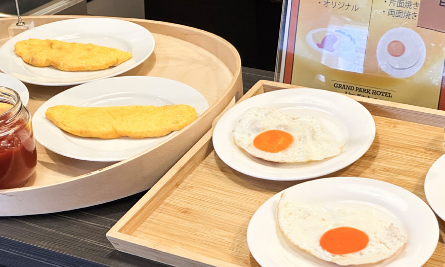 ・酪王ヨーグルト・こづゆ・福島県産の卵を使用したオムレツ、目玉焼き